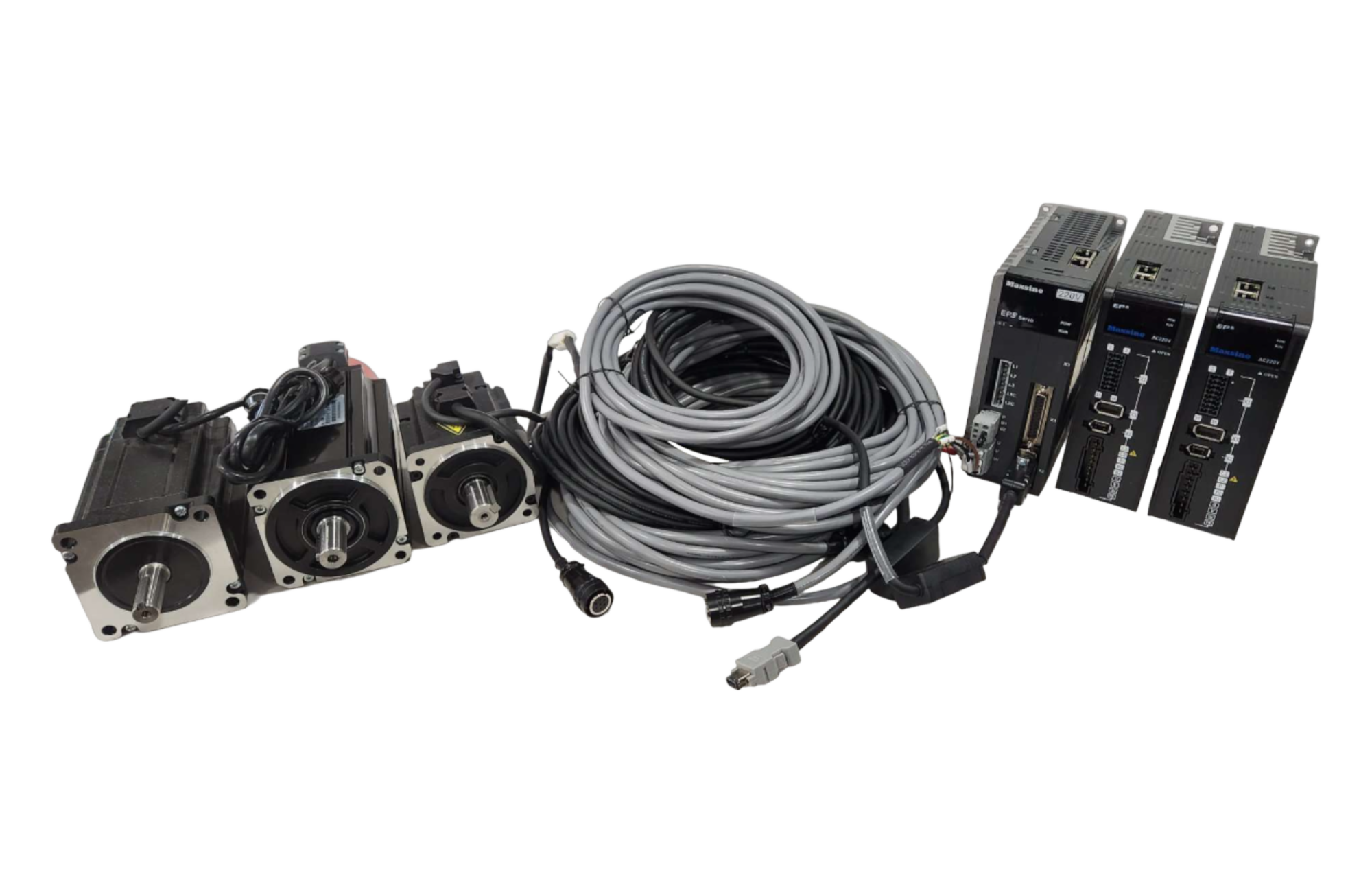 The EP5 Servo Drive and Motor Sets are equipped with great features. Our years of experience with these drives attest to their reliability and superior-quality. The compact drives utilize the latest silicon chip technology and robust AC servo motors, delivering outstanding performance, reliability, and build quality. They offer drive output power ranging from 100W to 15kW, with a high-speed loop response bandwidth of 3kHz. Equipped with a 23-bit single/multiturn absolute encoder, they ensure precise control and measurement. Each set includes one driver, one motor, and 5-meter cables.